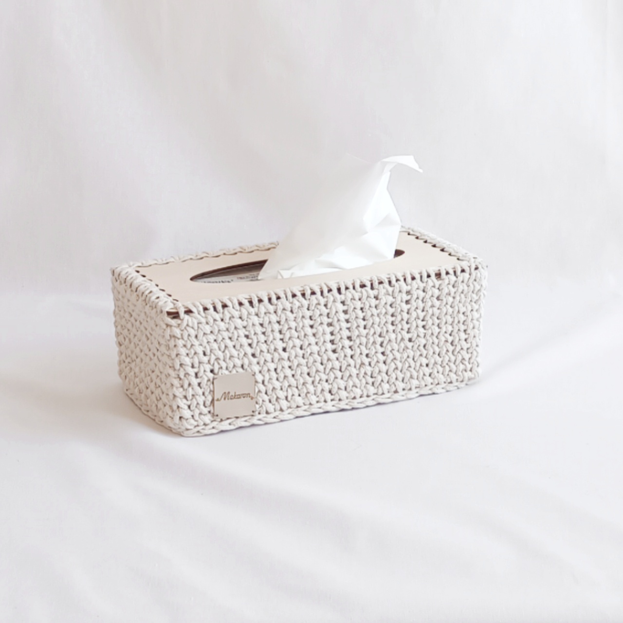 Tip na dárek. Box na papírové kapesníky ve smetanové barvě. Zútulní kousek vašeho domova. Vyrobeno ze 100% recyklované bavlny. Nečistoty lze otřít vlhkým hadříkem, prach vyluxovat.