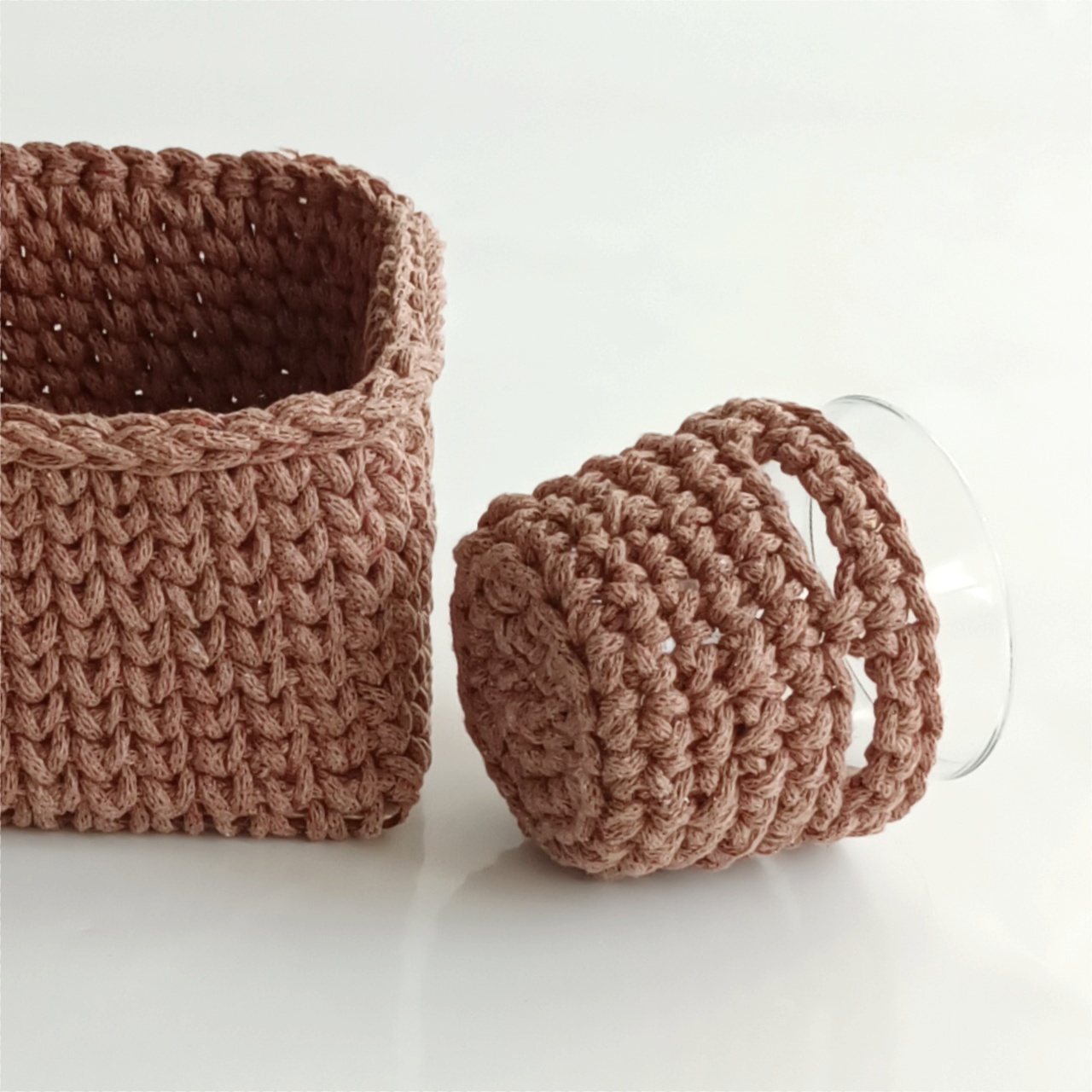 Obal na skleničku a čajovou svíčku v cihlové barvě udělá váš domov útulným. Sklenička i čajová svíčka jsou součástí sady.