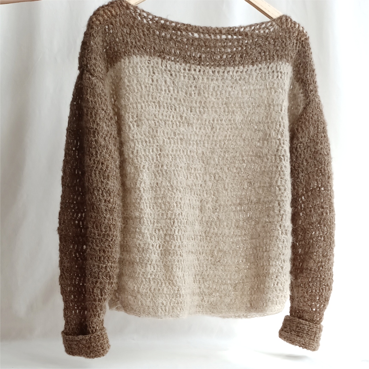 Jedinečná kombinace přírodních materiálů alpaky a hedvábí. Jemný a hebký materiál dodává svetru lehkost a hřejivost. Materiál 77% alpaka 23% hedvábí, šetrné ruční praní v chladnější vodě do 30°C, šetrně ždímat, sušit ve vodorovné poloze. Nesušit v sušičce, nežehlit, nečistit chemicky.