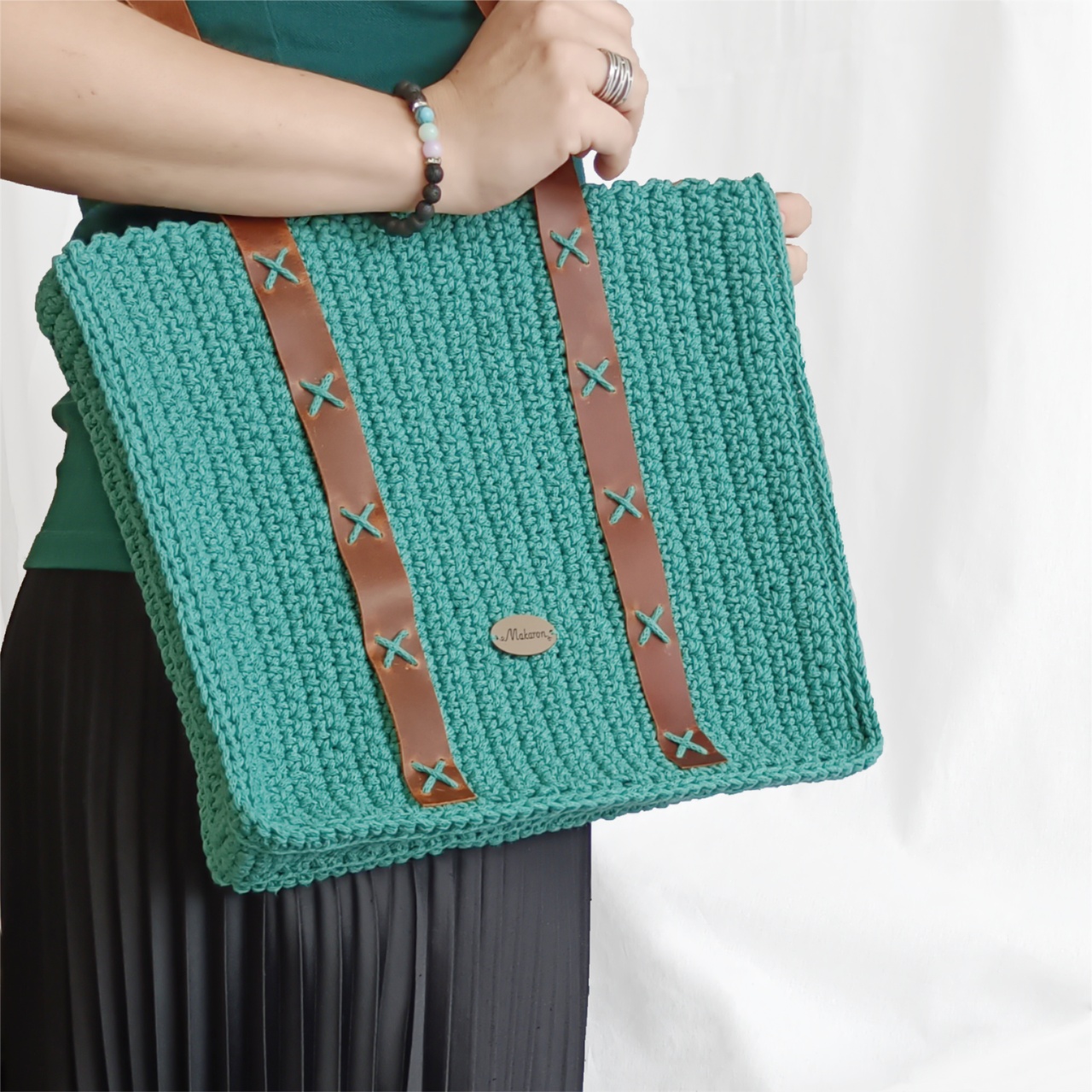 Ručně háčkovaná praktická a prostorná taška v zelené barvě.