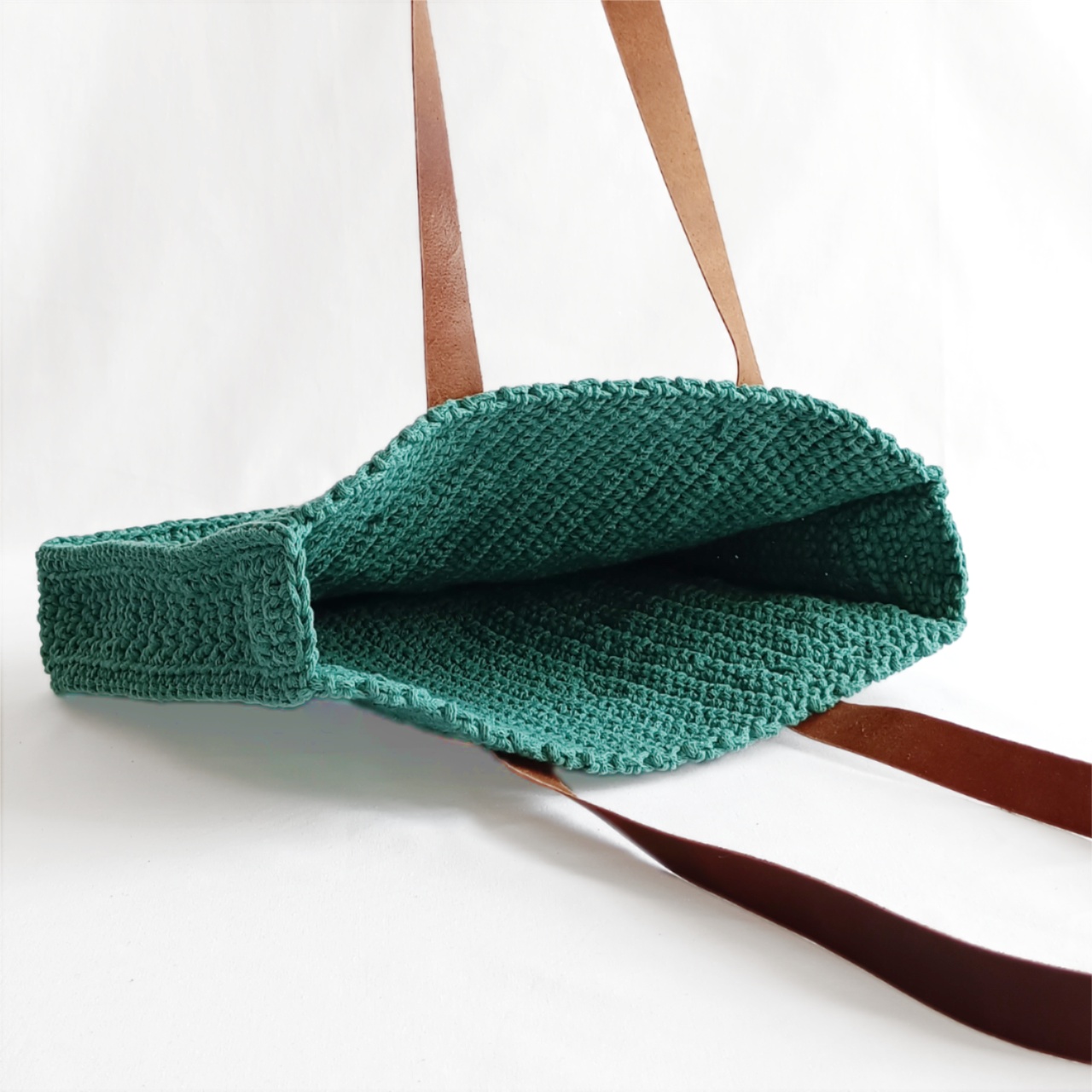 Vyrobena je ze 100% recyklované bavlny. Ucha mají šířku 2,5 cm a jsou z kvalitní hovězí kůže hnědé barvy.